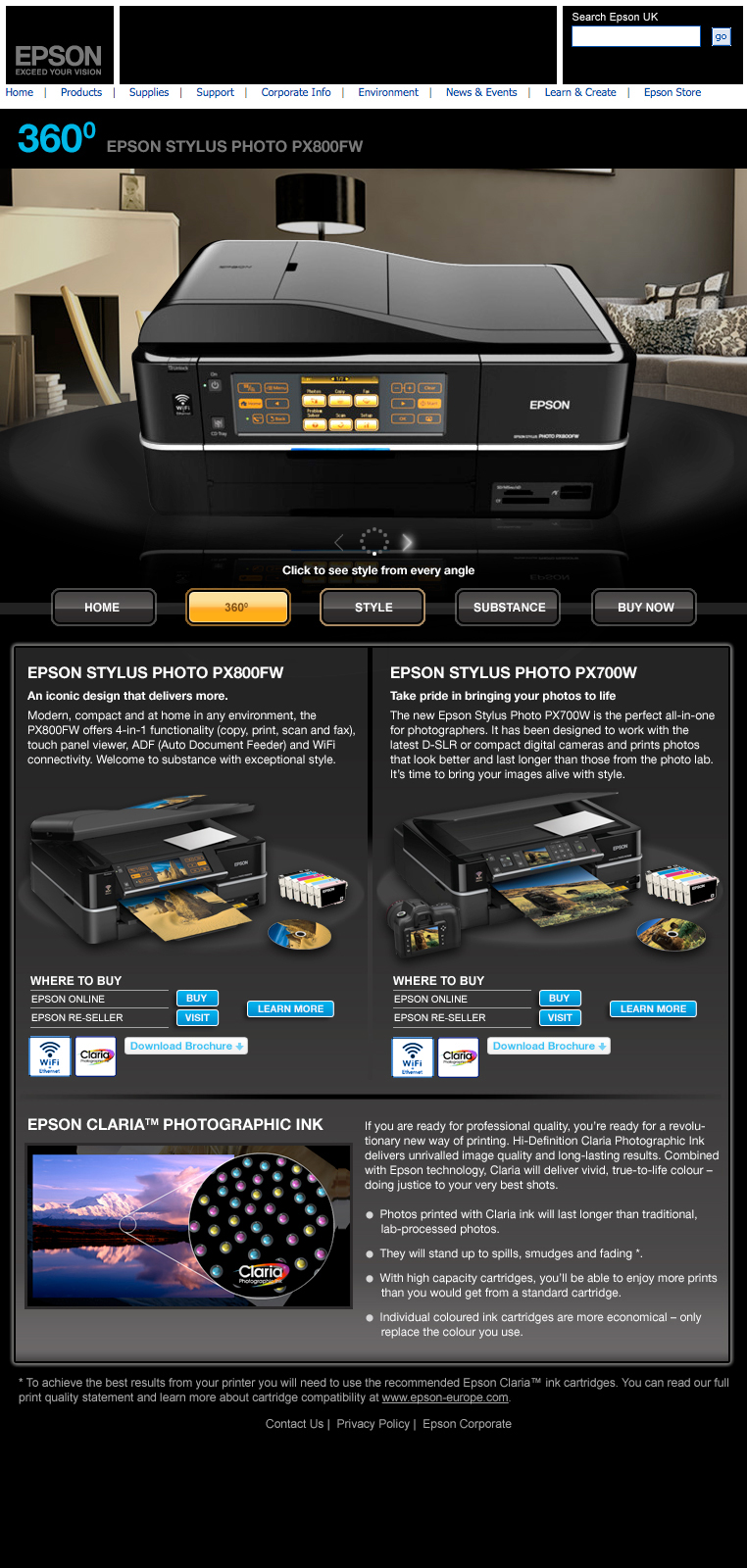 Flash site that promotes Epson’s high quality home printers. The concept concentrates on the design of the printers and how they would fit within the most stylish of homes.