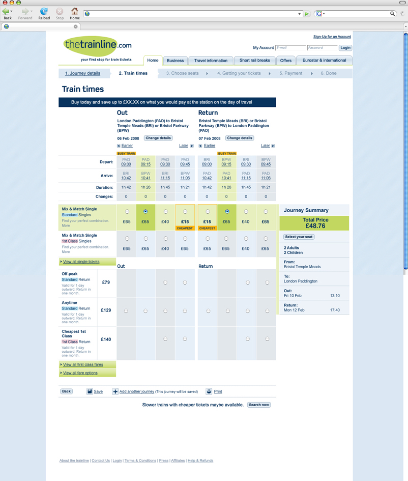 Approved direction of the main homepage http://www.thetrainline.com